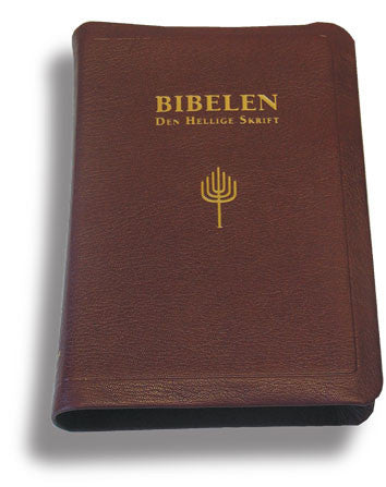 Omslaget er mykt geiteskinn av god kvalitet. Denne bibelen leveres i sort, burgunder og mørk brunt skinn. I tillegg fås den også i sort, glatt kalveskinn.
